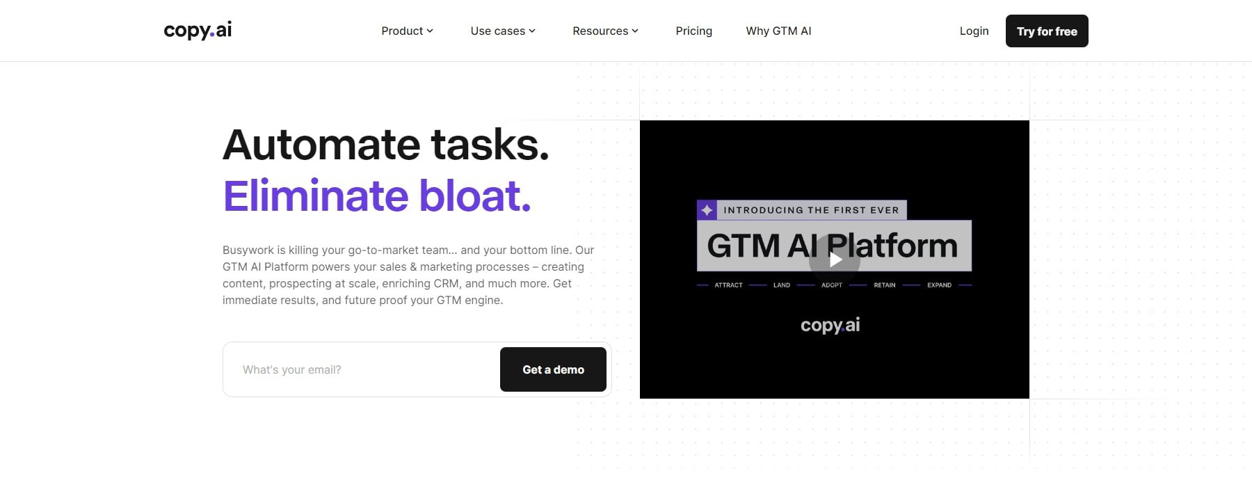 Copy.ai has a free version, and its premium plans start at $36 per month.