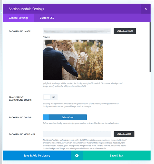 Now go into the section settings by clicking the blue βhamburgerβ icon. Upload your background image there.