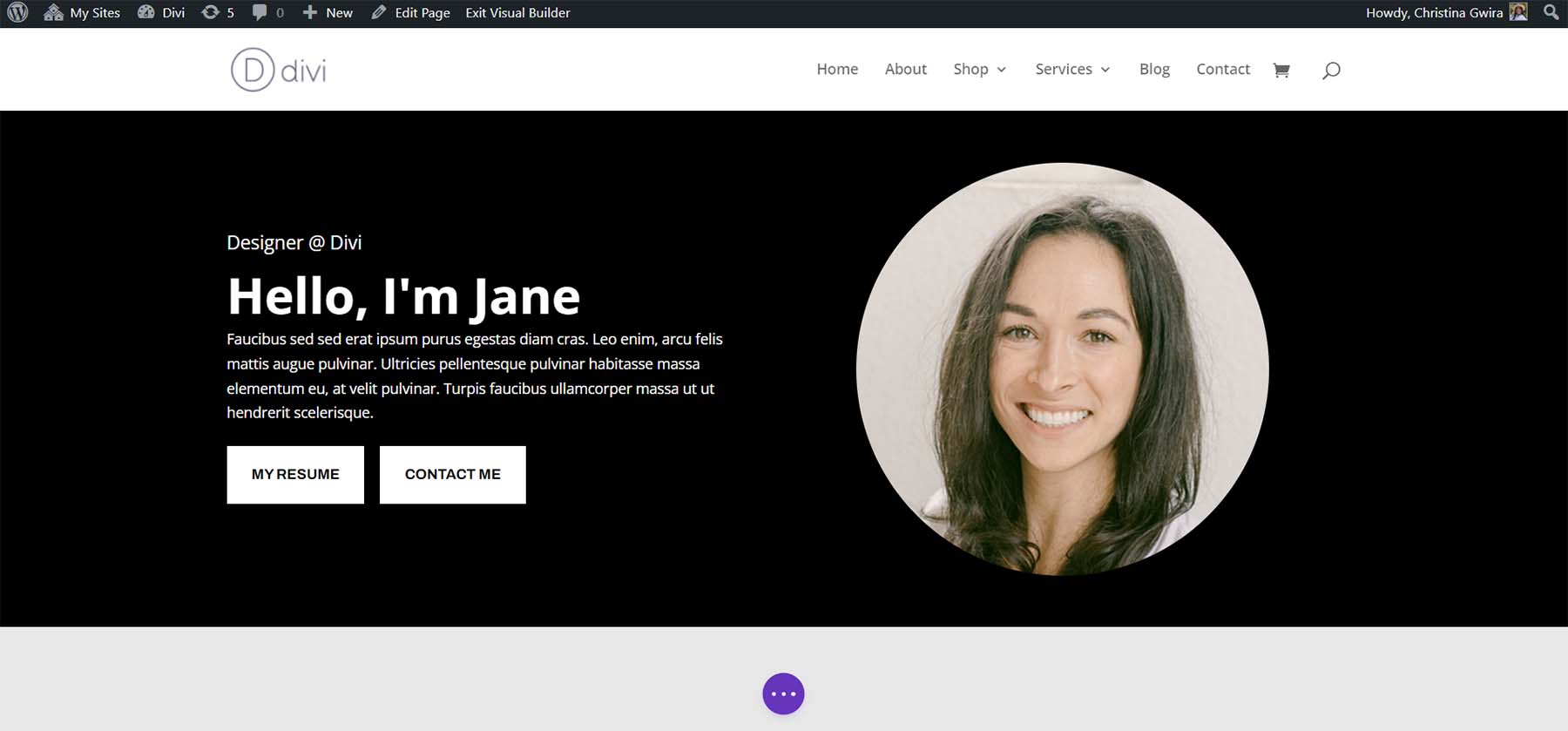 From the Portfolio Layout Pack, select the About Page Layout.