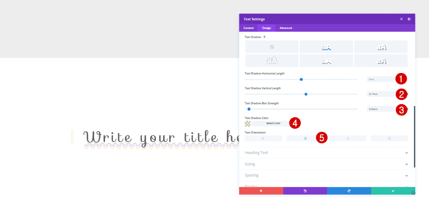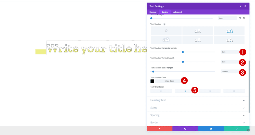 After adding a Text Module, you can start off by making the following changes to the Text subcategory within the Design tab: