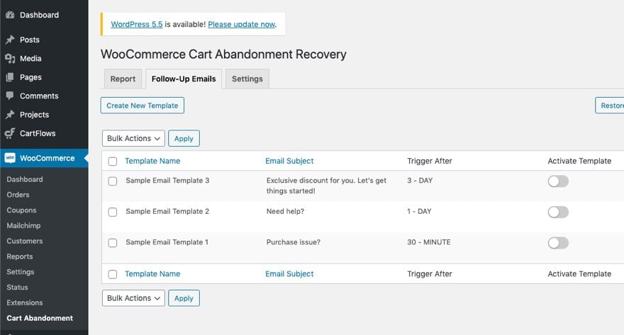 CartFlows also comes with the ability to manage abandoned cart recovery for WooCommerce. You can even send customizable email sequences to customers who have abandoned their carts.