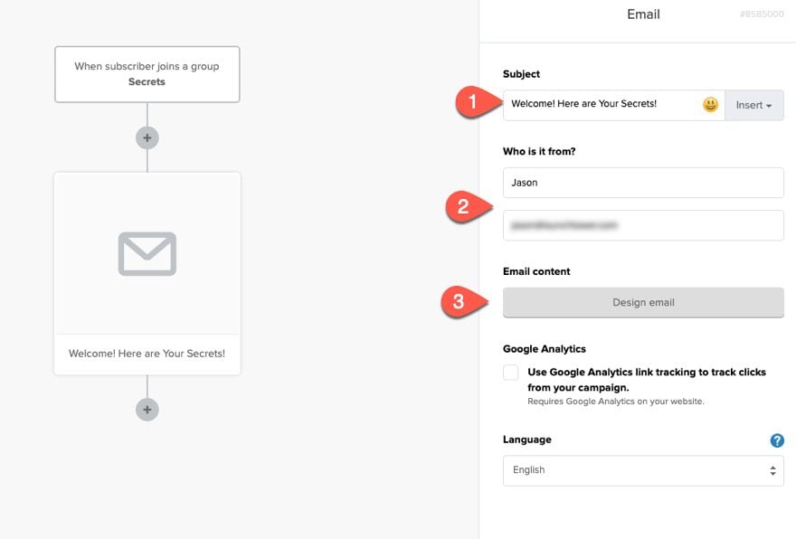 - The Email Automation Sequence (in MailerLite) has been set up to start when a subscriber joins the group āSecretsā.