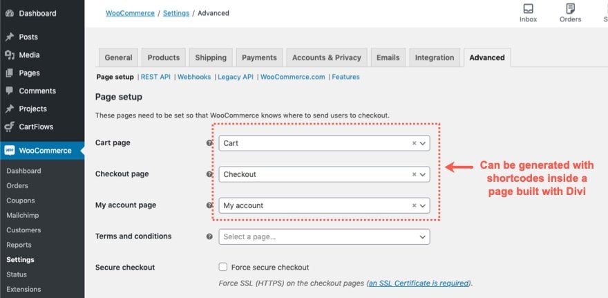 Some of the WooCommerce pages can be generated with a shortcode. These includeā¦