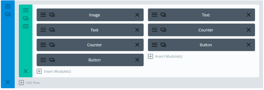 For the next example Iβve added other modules to create some calls to action. Iβve using an image, text, counter, and button as seen in the image above.