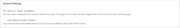 In General Settings you can decide if the global layouts will be injected into the Divi blank template (the one without the standard WordPress header and footer). You can also choose to hide the standard WordPress header on all pages and posts and replace it with one that youβll inject with the Injector plugin.
