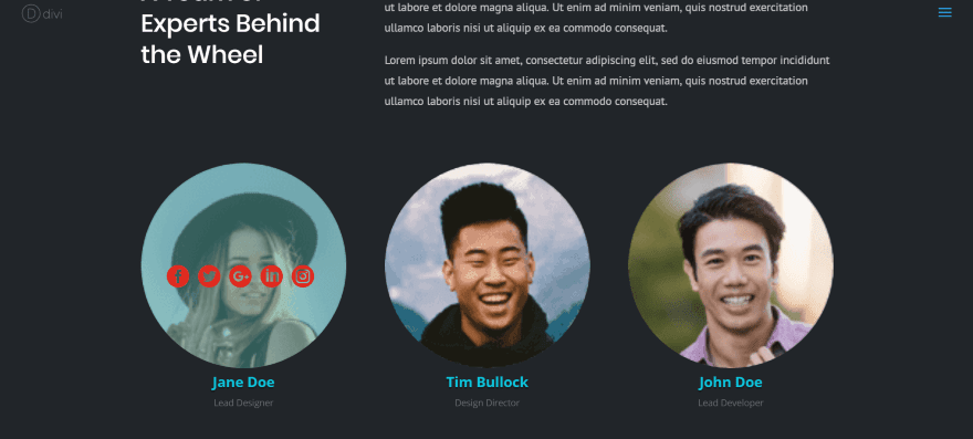 Letβs take a look at Divi Team Members and see what it can do. Images from these examples came from Elegant Themes layouts. Iβm using a combination of squared and circled images.