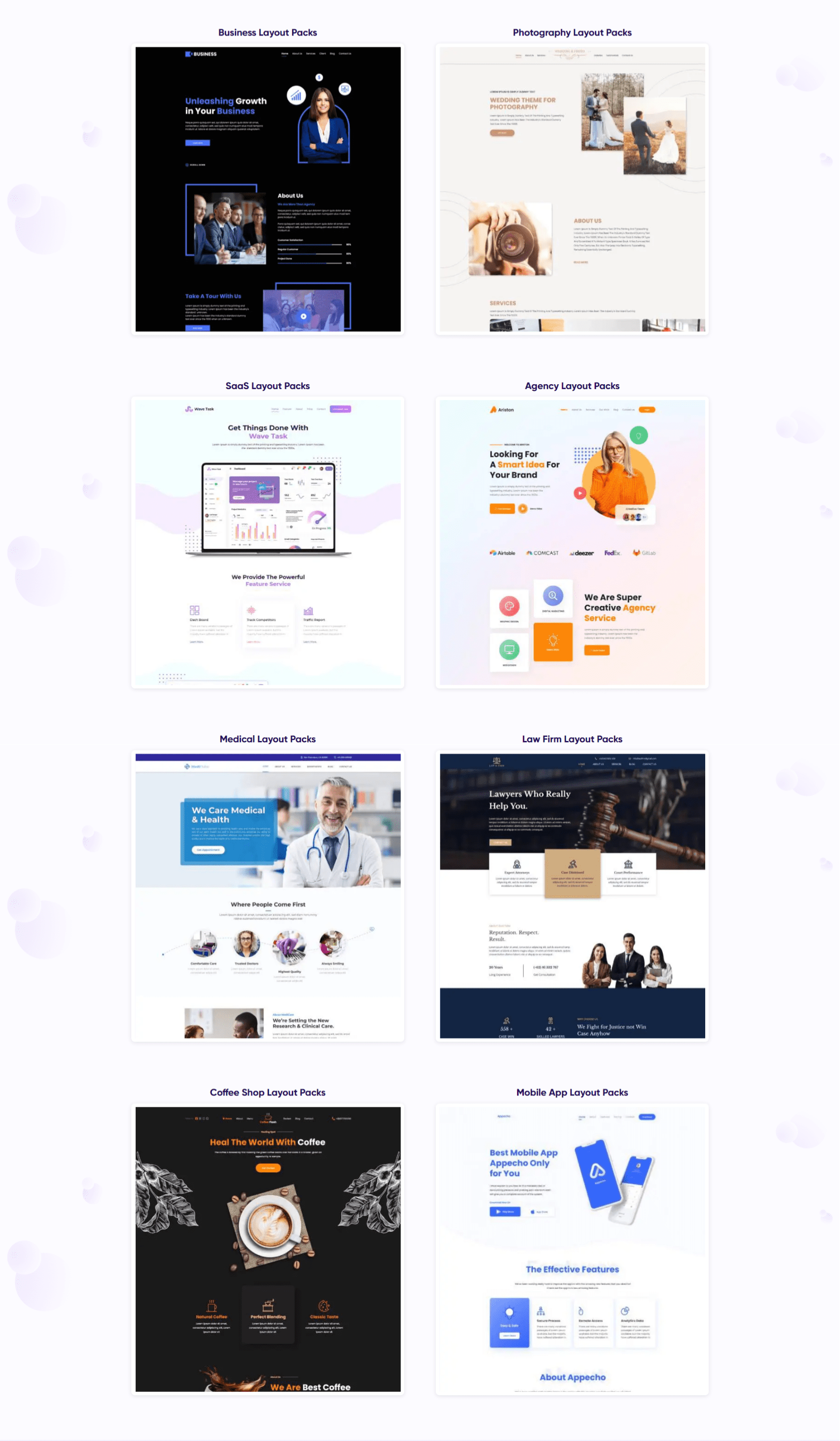 Here are a few examples of layout packs available with DiviFlash: