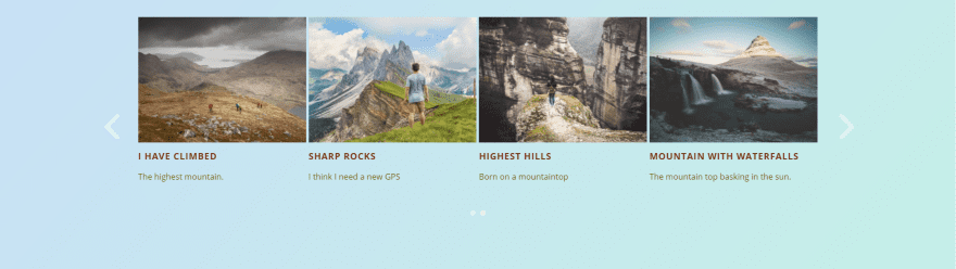 This one displays 4 images. Iβve increased the image size and decreased the item margin from 8 to 4. Next I adjusted the sizes and colors of the fonts, arrows, and controls. The title fonts have increased spacing.