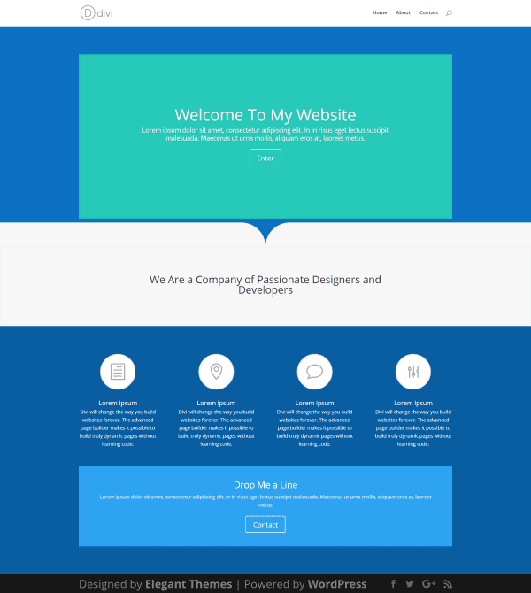 In order to create examples I made a test page using the Homepage Basic layout from the Divi Library. The second section is a full-width header with text. This is the section where I will add the styles. To help this section stand out Iβve styled the sections above and below in blue.