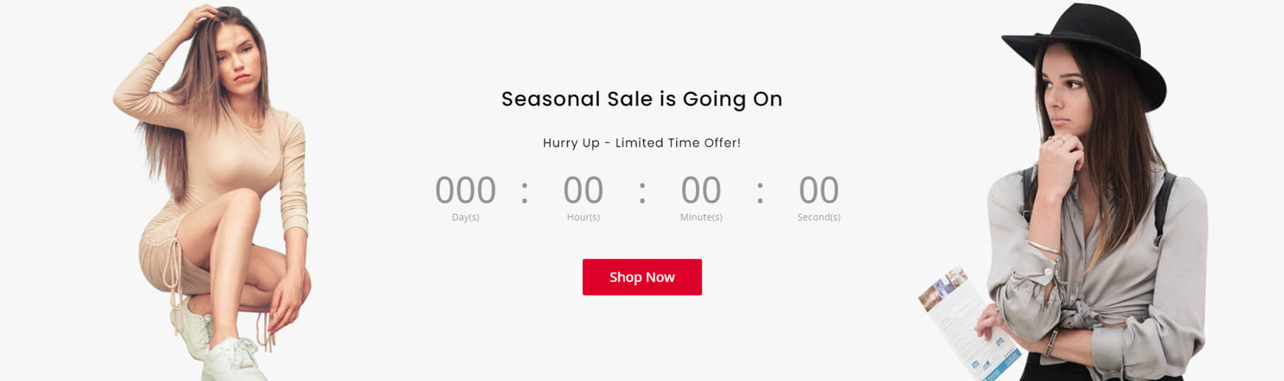 This example shows several sections of product images and includes a countdown timer and featured products.