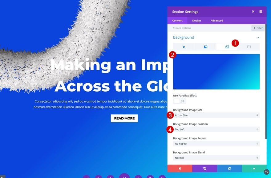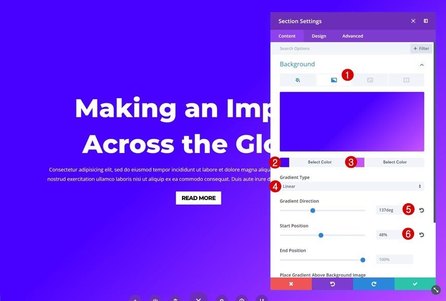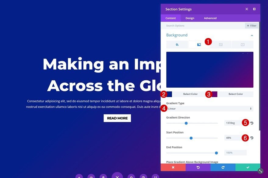 To top it off, add a row gradient on top of your section background. This will make the text more readable. It will also help you add some depth to your page.