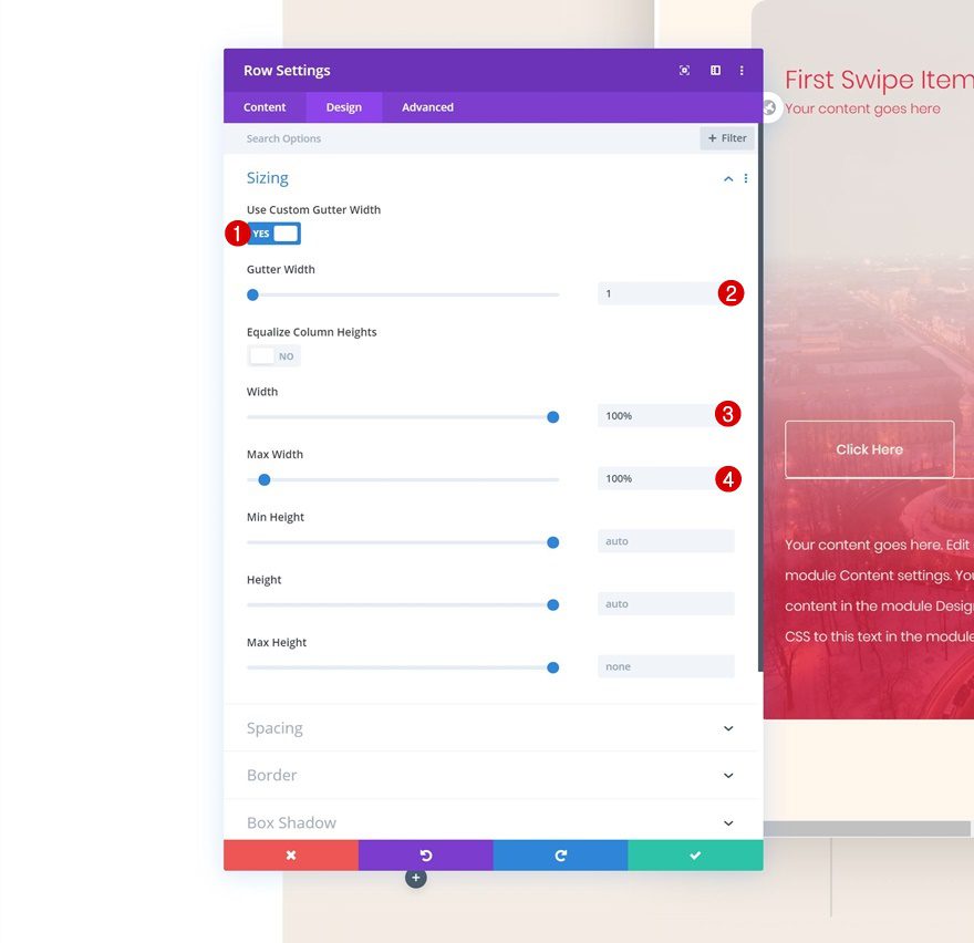 Once youβve completed the row settings, you can open the first columnβs settings.