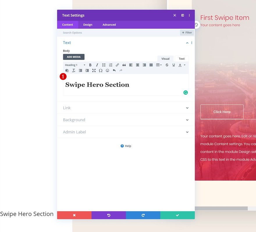 Time to start adding modules! Start with a first Text Module and enter some H1 content of your choice.