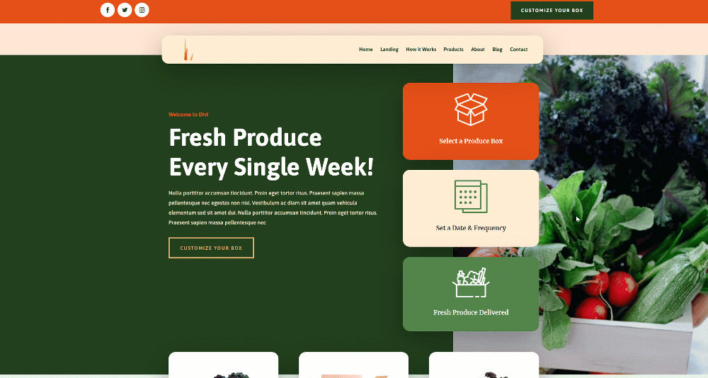 Hey Divi Nation! Thanks for joining us for the next installment of our weekly Divi Design Initiative where each week, we give away brand new freebies for Divi. Recently, we shared a brand new Produce Box Layout Pack. To help you get your website up and running as soon as possible, we’re sharing a global header & footer template that matches this layout pack perfectly as well! Hope you enjoy it.