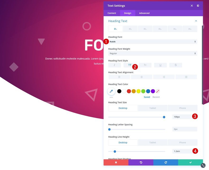 - Heading Text Size: 100px (Desktop), 42px (Tablet), 32px (Phone)