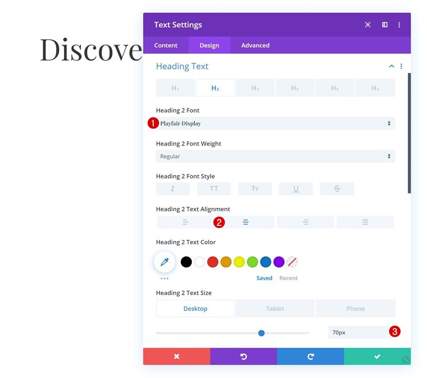 - Heading 2 Text Size: 70px (Desktop), 40px (Tablet), 30px (Phone)