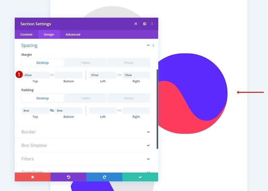As you can notice in the preview of this post, we’re turning this section in a circle. To do that, we’ll first need to add some custom margin and padding values across different screen sizes: