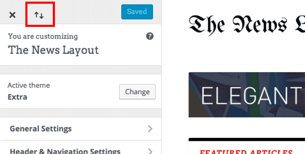 To import the news layout’s customizer settings navigate in your WordPress admin to Extra > Theme Customizer. Click on the import/export icon in the top left corner.