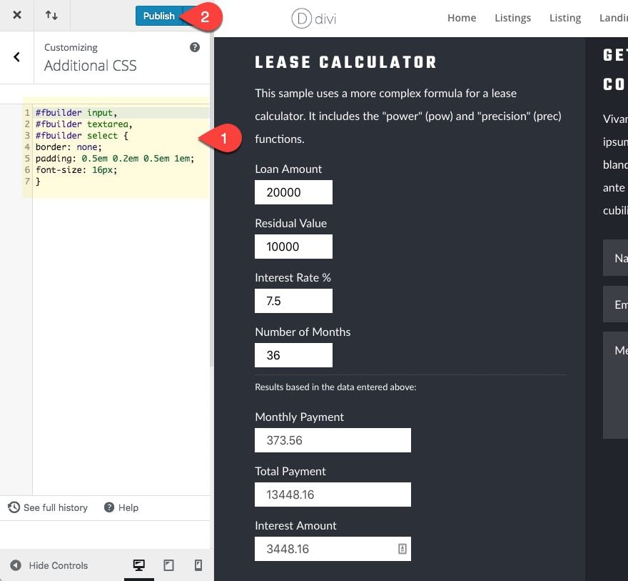 The Calculated Fields Form plugin will allow you to create forms to calculate just about anything you want, but the learning curve does seem a bit steep for advanced calculations. Thankfully, the free version of the plugin comes with a lease calculator that will work right out of the box. And adding it to Divi is as easy as embedding a shortcode and updating a few settings. If you rather, you can check out the best WordPress form plugins and see if their mathematical operations are robust enough to create the calculator form you are envisioning.