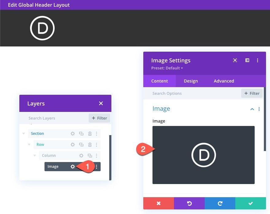 After the row settings are updated, add an image module to the row/column to create the logo.