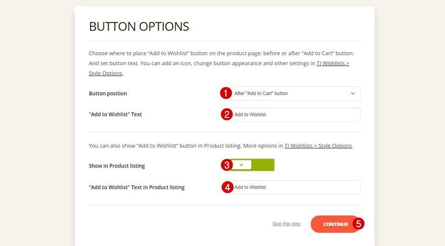 Move on to the ‘Product Listing Button Settings’ part and apply the same settings to the button as done before.