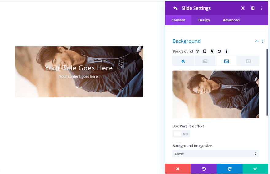 Then rotate the slider module by 90 degrees along the z-axis using Divi’s transform options.