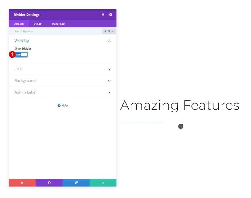 The second module needed in column 1 is a Divider Module. Make sure the divider shows up by enabling the โShow Dividerโ option.