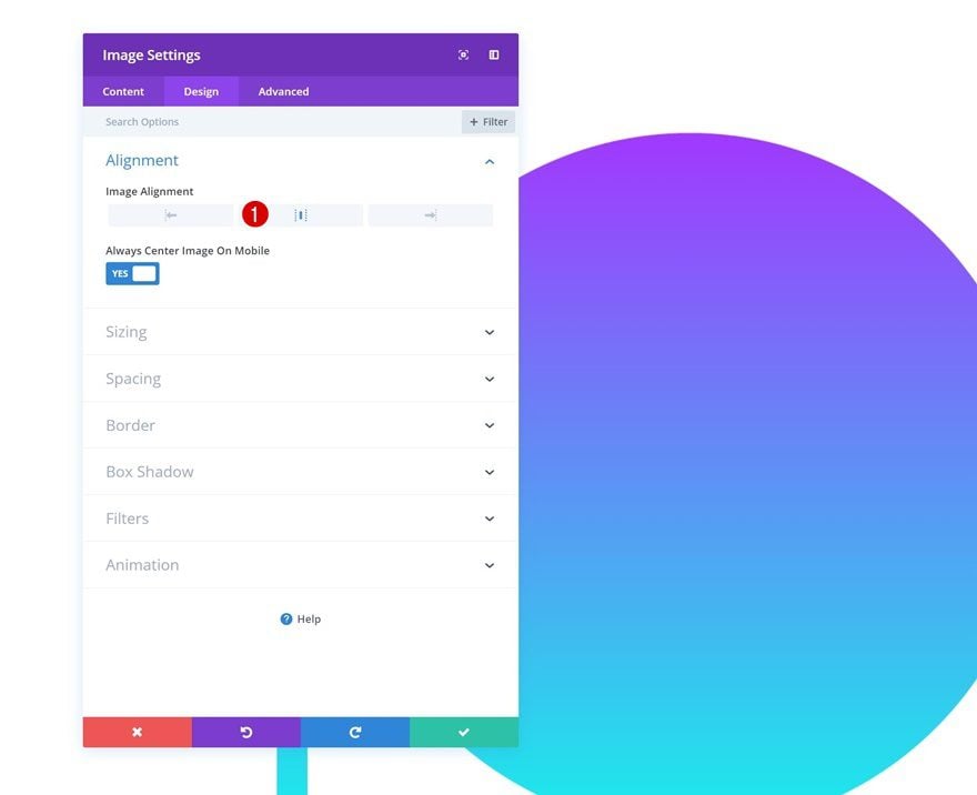 Now, to collide the circle weโve created in the first part of this example and the grid, weโre going to give the Image Module (containing the shaped image overlay) some negative bottom margin.