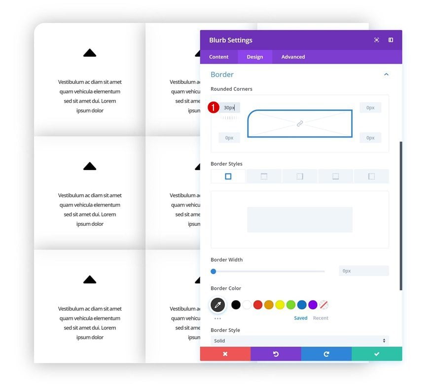 Now, once youโre done modifying the first Blurb Module, you can go ahead and clone it 8 times. Place three duplicates in the second column and three in the third. In the next part of this tutorial, weโll make unique changes to each one of the Blurb Modules. To do that, weโll follow the numbering below: