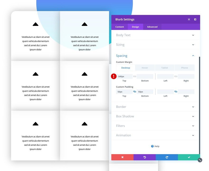 - Top Margin: -340px (Desktop), 0px (Tablet & Phone)