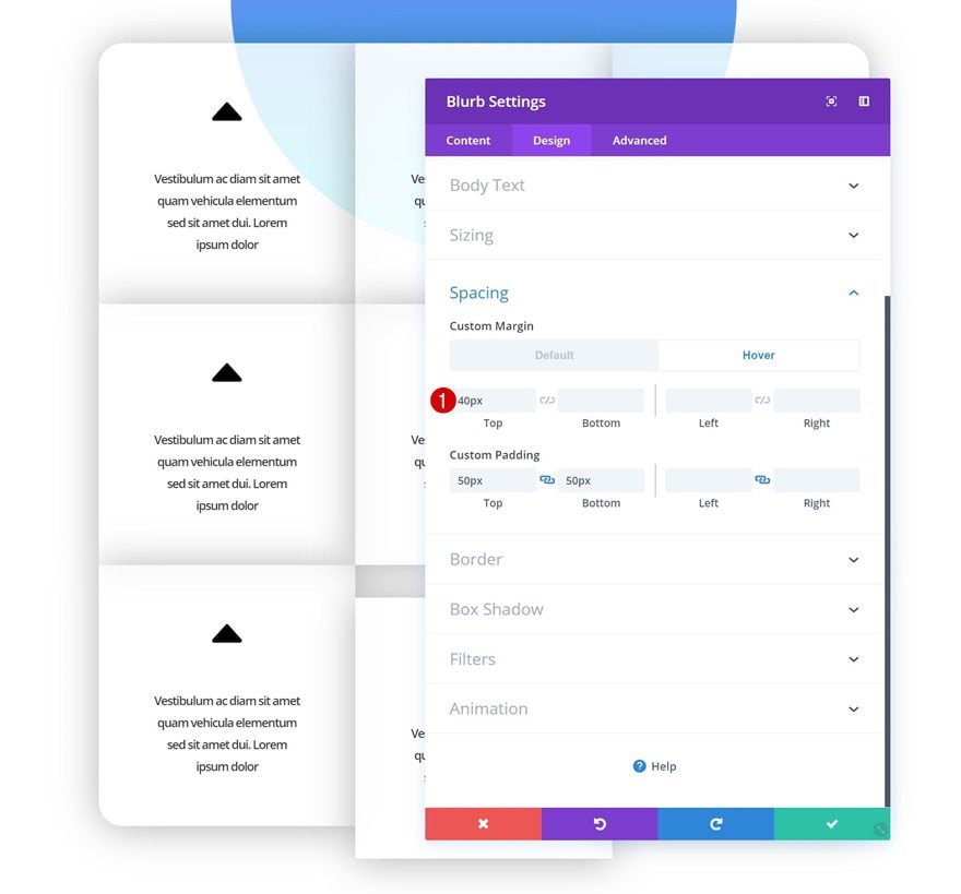 On to the ninth and last module! Go to the spacing settings and add some custom hover margin values.