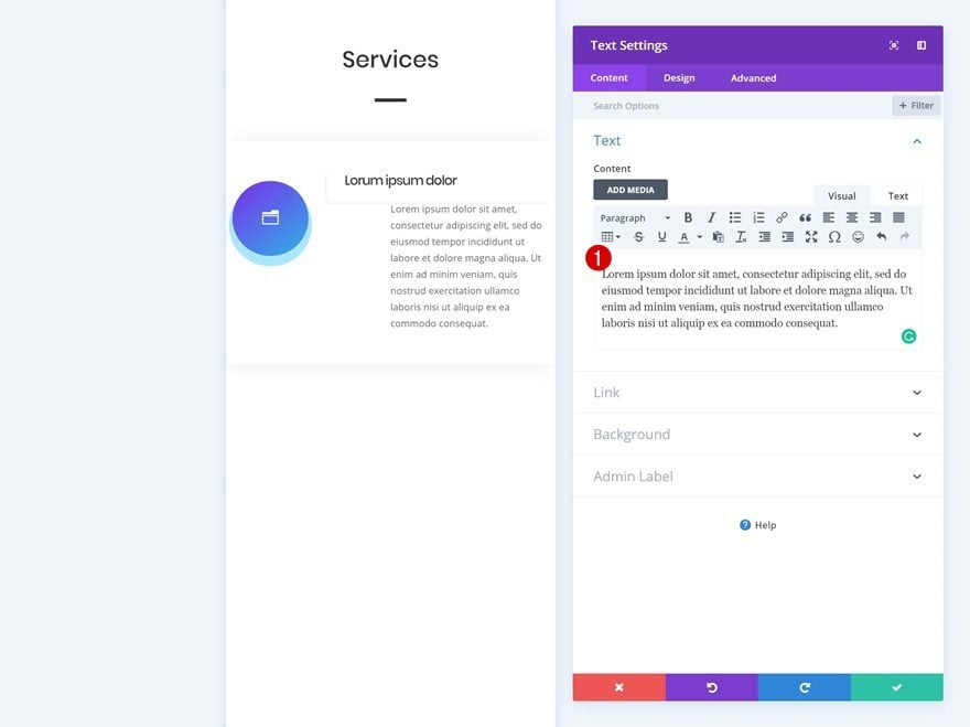 Now we can start adding modules! Add a Text Module to the first column with some H3 copy and a link.