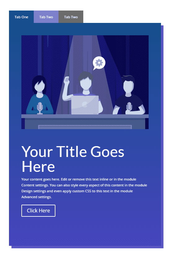 Sorry for the confusion. It should have read “Body: Tab One” instead of Content. Basically all I was trying to convey was that you needed to add the text “Tab One” to the text module body content. It doesn’t have to be “Tab One”. It could be any label text your want to display on your tab.