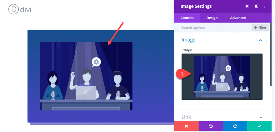 In column 1, add an image with an image module. I’m using one from the Design Conference Layout Pack.