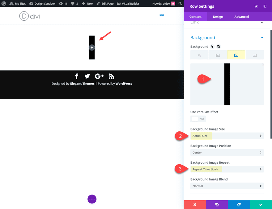 The easiest way to create a sign post for this design is to create a small repeatable image block that we can add as a background image that repeats vertically down the section or row of the page. If you want to skip this step, you can import the json layout included in the free download above to get started. But if you want to create your own with a custom color of your choice, here is how to do it.