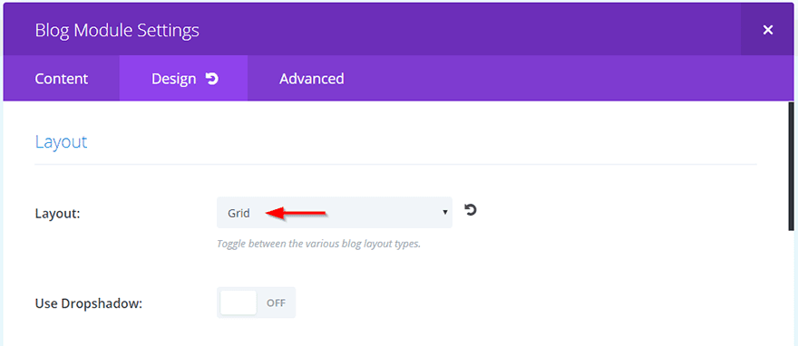 Next, in the Design tab choose Grid from the layout dropdown.