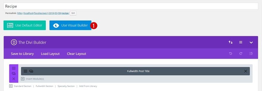 Now that we’ve modified the fullwidth section according to our needs, we can add the Fullwidth Post Title Module to this section. This will make your post title, and all of its elements, appear automatically.