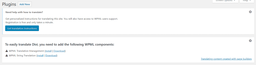 First, purchase the version of the WPML plugin that works best for your needs. Multilingual CMS and Multilingual Agency support page builders.