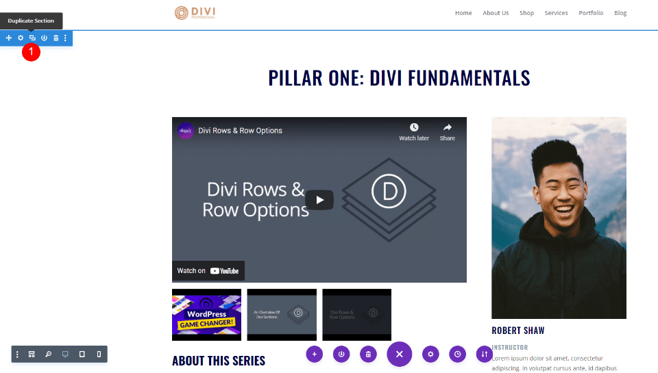 Now that the Section is designed and styled the way we want, hover over its settings and make 2 duplicates.