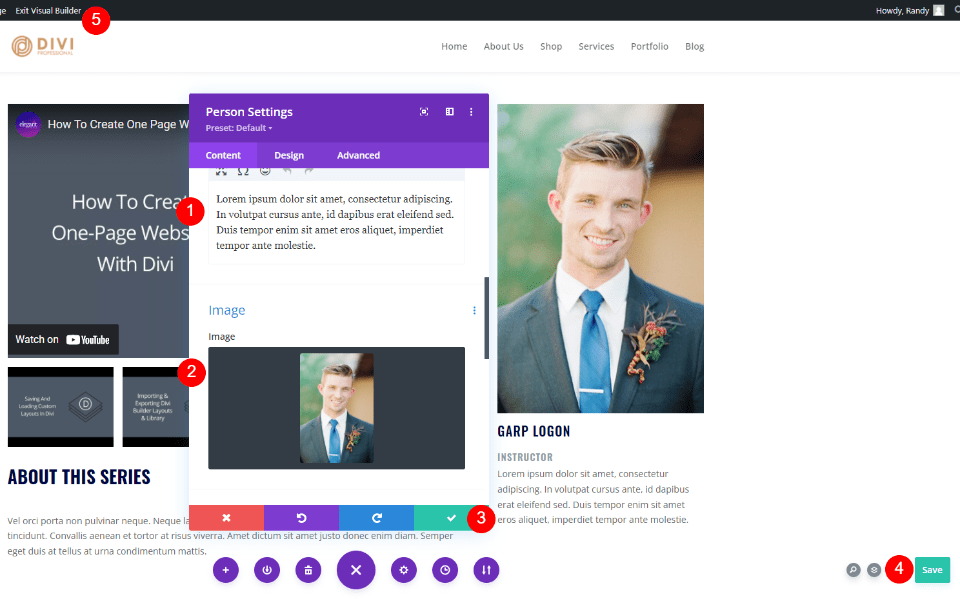 Scroll down to the Body Content and Image area and replace them to match this person’s information. Close the module, save your page, and exit the Visual Builder.
