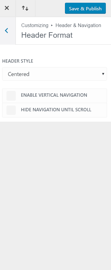 Now, go back to Header & Navigation and change the header style to ‘Centered’ within Header Format.