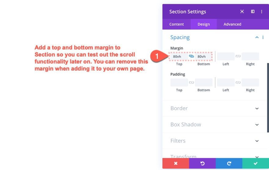 To be able to preview the scroll effects later, add some top and bottom margin to the section as follows:
