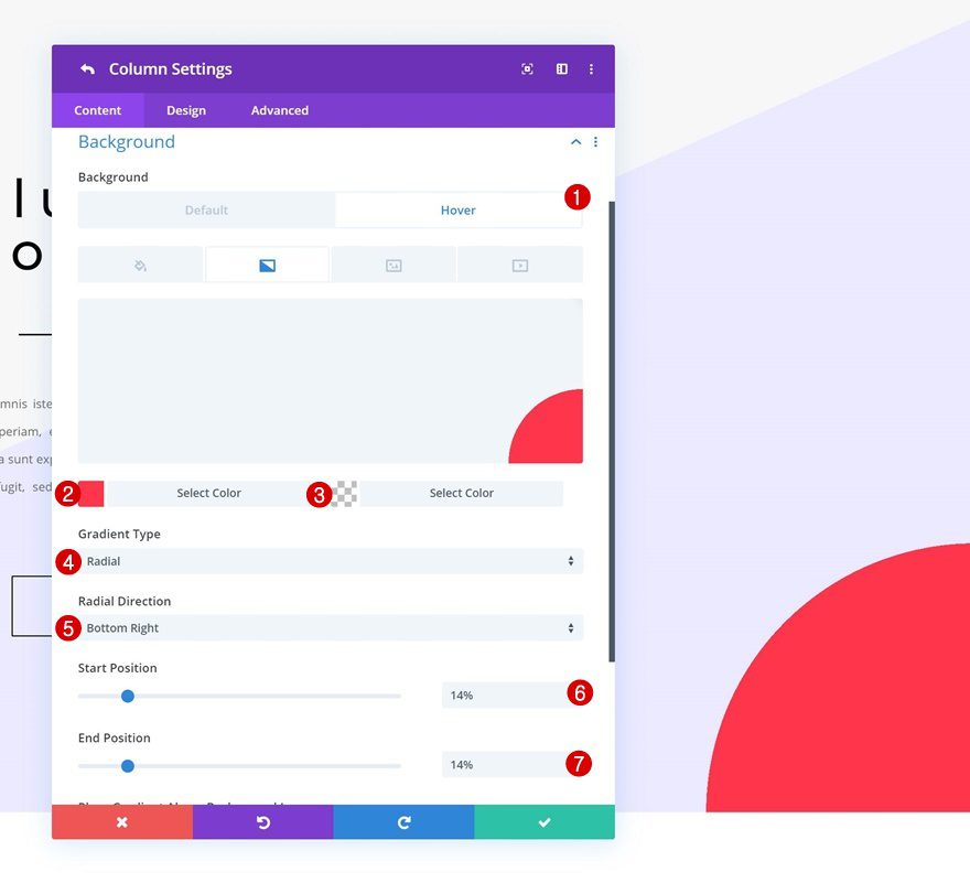 On to the next and last example! Open the section settings and apply the following gradient background: