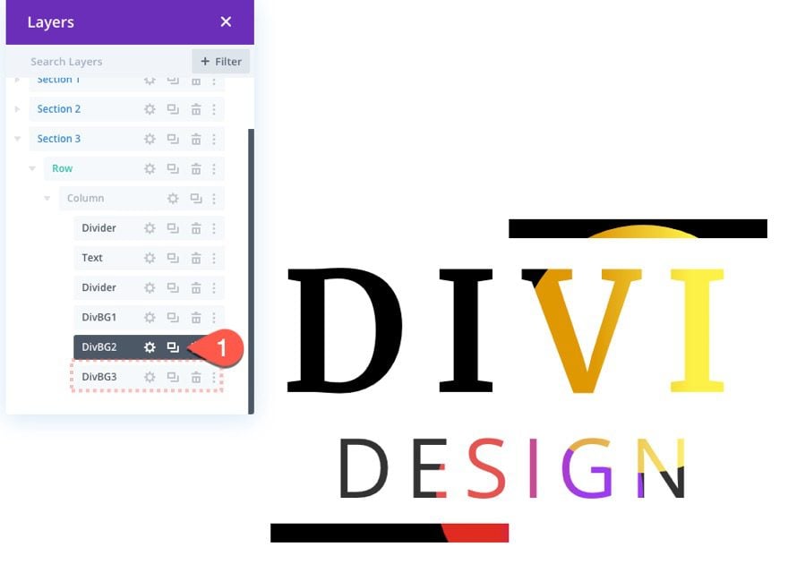 Then give the divider an absolute position to position it directly on top of the other modules. Use the Z Index to make the divider sit behind the other modules.