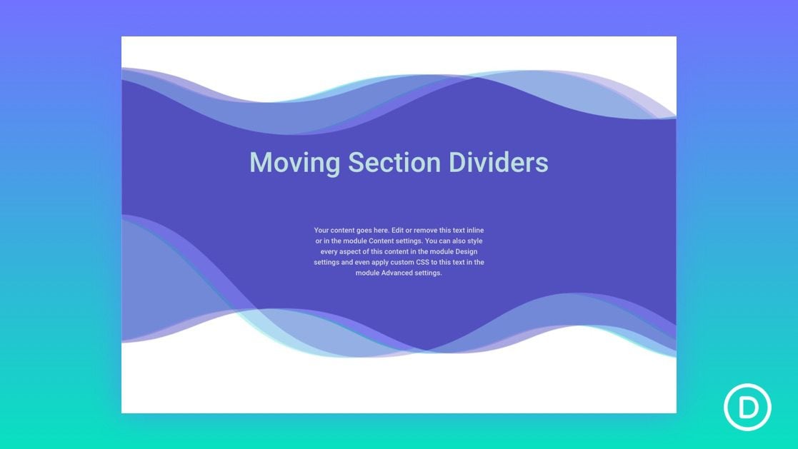 Since the section used for the divider design has no height, it can easily be duplicated to create overlapping animated section divider designs. This opens the door for much more creative designs.