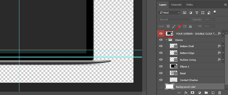 Next, copy the image and paste it into the screen layer you have opened. You’ll see that, if you’re using the right width and height, the image will fit perfectly and a new layer will be created. However, if your image is larger than expected, you can always adjust it by using CTRL + T (on Windows) or Command + T (Mac) to make the image fit.