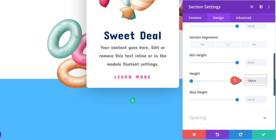 This will make sure the blurb module we will add to the middle column will stay above all other content on the section.