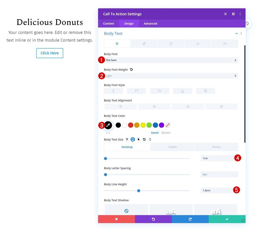 Move on to the design tab and change the general text settings.