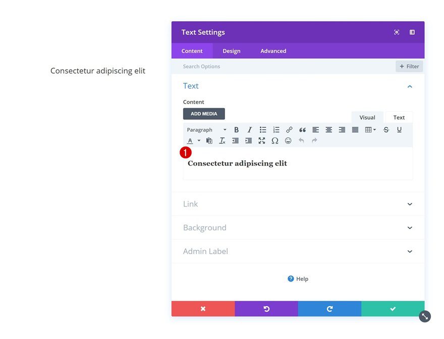 Now that we have all the column content we need, we can add the overlapping element thatβll hide the content before hovering. To achieve this, weβre going to use another Text Module. Go ahead and add another one to the first column. Make sure this is the last module in the column. Add some content of your choice.