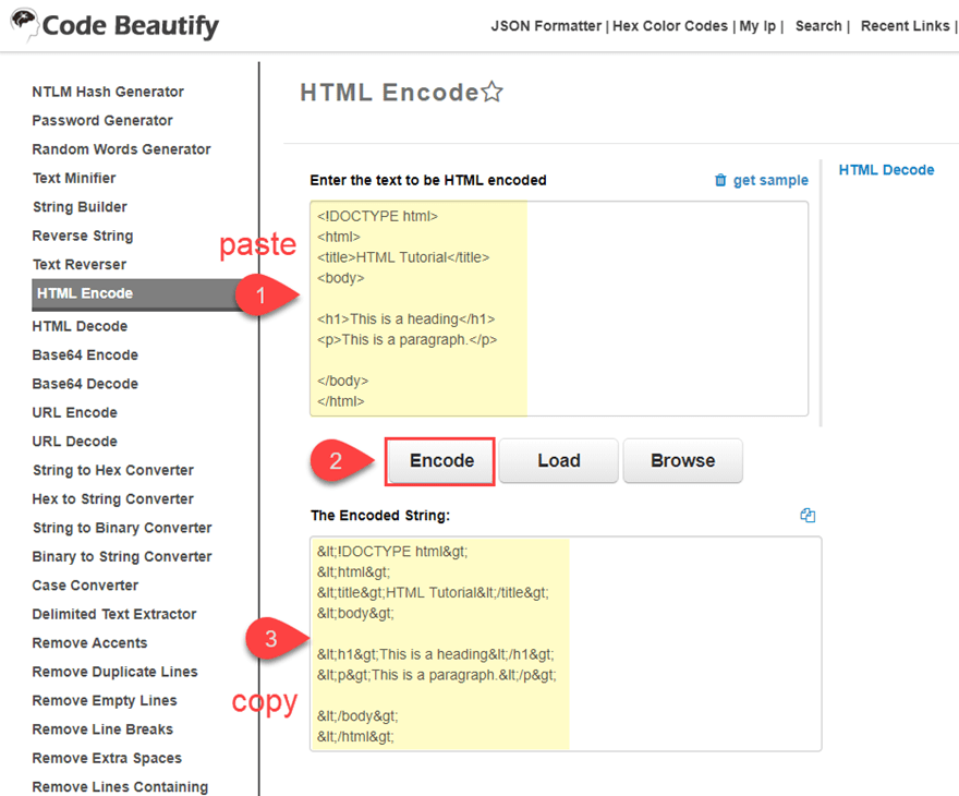 - 4.1 Step 1: Encode your Code using and HTML Entities Encoder.